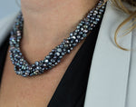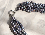 A Pearlicity exclusive. Dozens of small irregular shaped pearls in iridescent blues and purples on multiple strands are a feast of color.