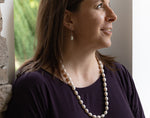 A matched set of pendant earrings, bracelet and necklace consisting of medium sized, natural white baroque pearls with gold or silver spacers.
