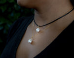 The pendant is on either a gold or silver chain with a matching setting for the second pearl.