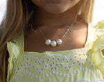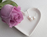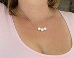 Three perfect, AAA quality pearls float on a fine silver chain with a spring clasp.