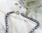 A versatile necklace of irregular shaped, medium sized pearls in amazing iridescent colors.